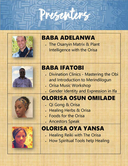 Oluwo Fagbamilia will enlighten us with special messages and the Ifa Inner Circle Team Presenters will be threading in their wisdom as well.